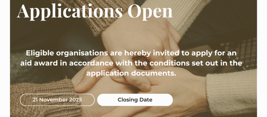 Kwalifiserende organisasies word hiermee genooi om aansoek te doen vir ’n hulptoekenning in ooreenstemming met die voorwaardes soos uiteengesit in die aansoekdokumente. Gemelde dokumente sal gratis beskikbaar wees en kan as volg bekom word: